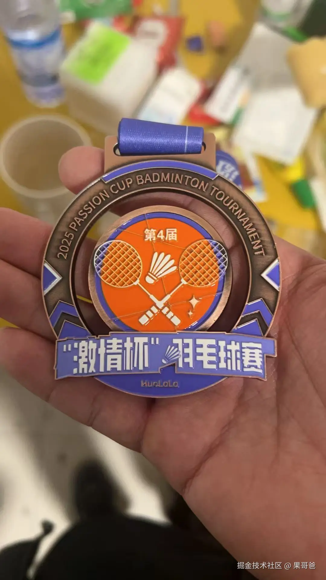 今年羽毛球依然打得比较频繁,很幸运拿了几块奖牌,其中公司团体赛难得突破小组赛,拿了个第三名。