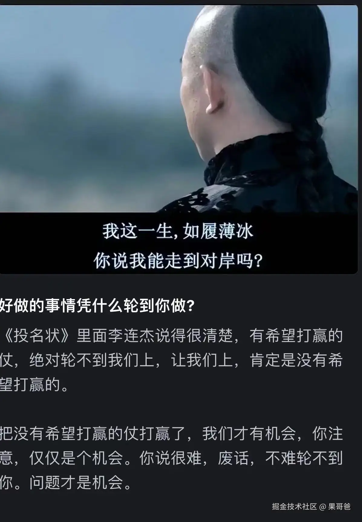 我一直很喜欢这句话: 人应该像树一样的成长,默默地扎根,静静地汲取养分,也许两年、三年你长不大,可是五年、十年、二十年、三十年呢?时间是长期主义者的朋友。