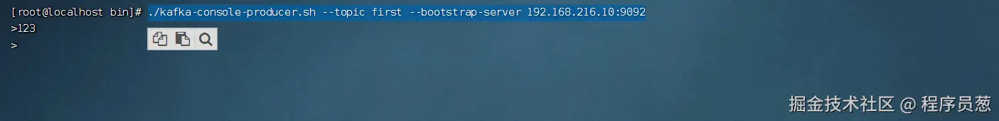 ./kafka-console-producer.sh --topic first --bootstrap-server 192.168.216.10:9092
