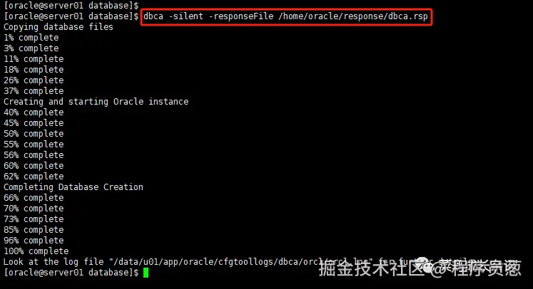 [oracle@server01 database]$ dbca -silent -responseFile /home/oracle/response/dbca.rsp