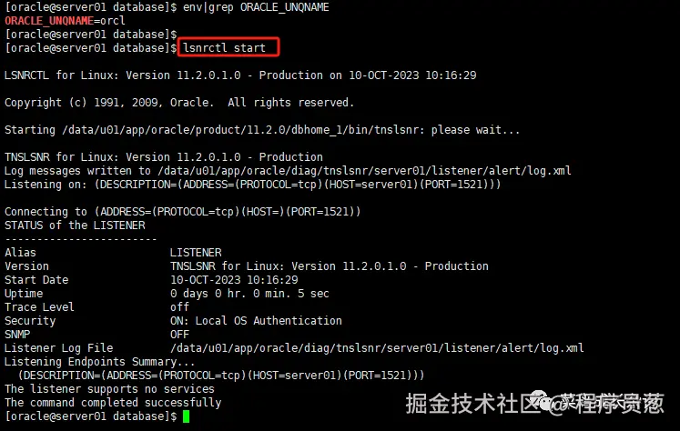 [oracle@server01 database]$ lsnrctl start