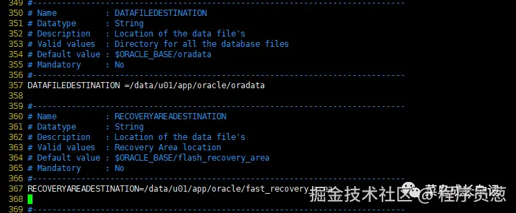 367 RECOVERYAREADESTINATION=/data/u01/app/oracle/fast_recovery_area