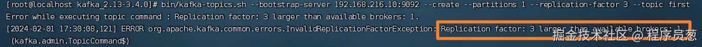 这里有一个坑就是指定分区和副本的时候,副本的数量不可以大于Broker的数量。要不然会报错。