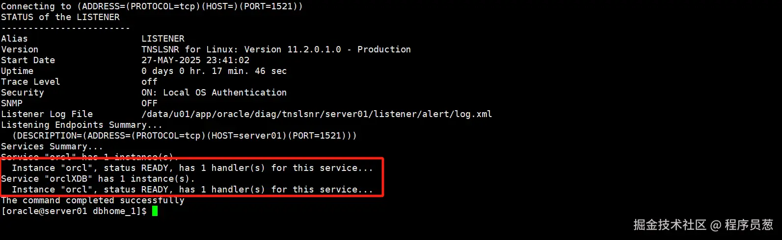 1)查看监听器状态:lsnrctl status