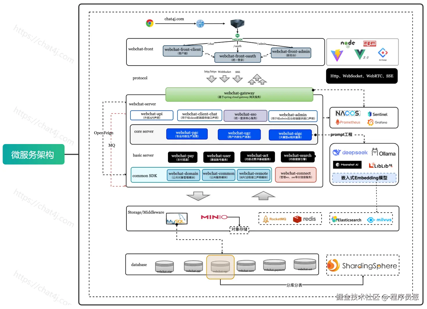 webchat-gateway:业务网关服务,前端的请求会经过业务网关路由到不同的服务上