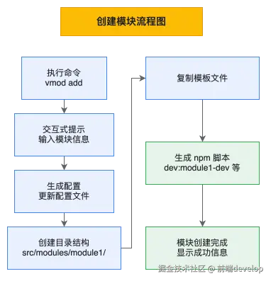以下是创建模块的流程图,展示了从执行命令到模块创建完成的完整过程: