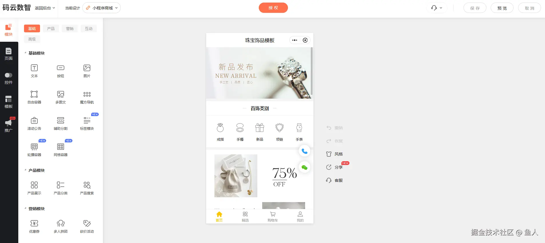 性价比首选,以“拖拽式装修”实现零代码开发,10分钟即可生成基础电商小程序。其定价策略堪称行业标杆:标准版年费1998元,仅相当于同类平台1/5价格,且包含商品管理、订单系统、支付对接等全流程功能。拥有大量现成的模板,涵盖不同行业和风格,用户可以直接选择合适的模板进行修改,大大节省了开发时间和成本。