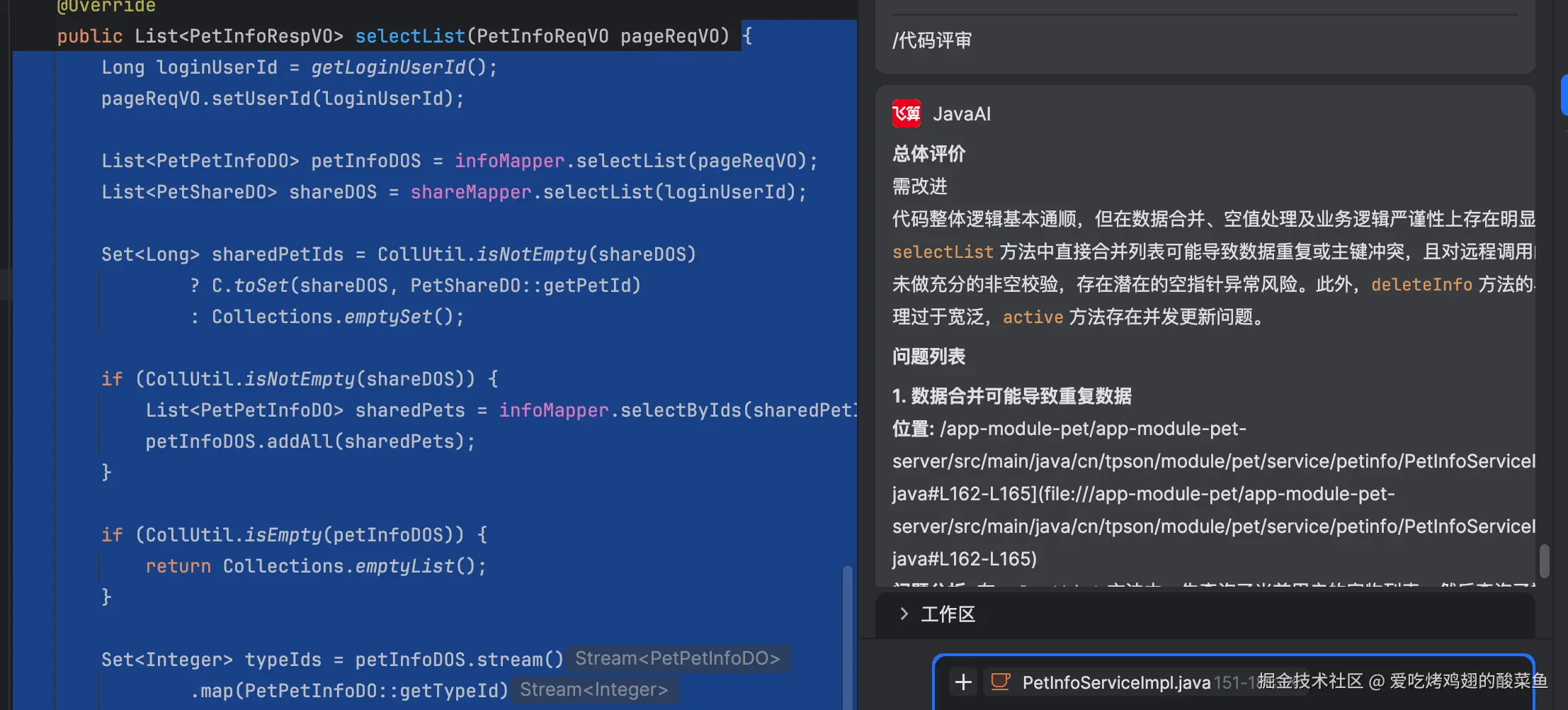 - 存在N+1查询问题,建议用批量查询优化;
