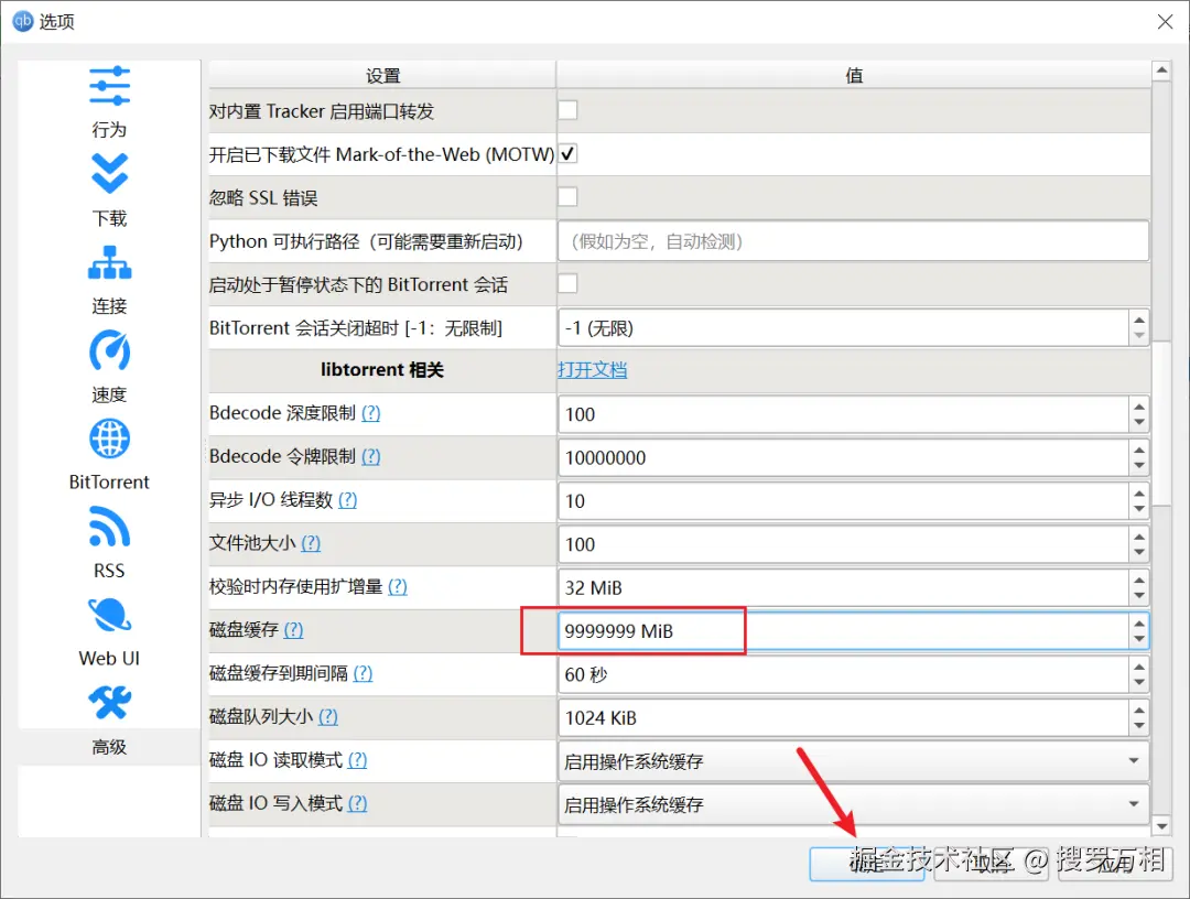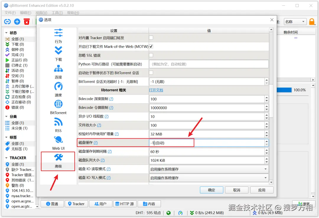 还有,就是高级里的磁盘缓存,说到这个,缓存越大,硬盘的读写速度越快;这也就意味着配合这款下载工具,它的写入速度也会越快,因为下载本质上它就是写入: