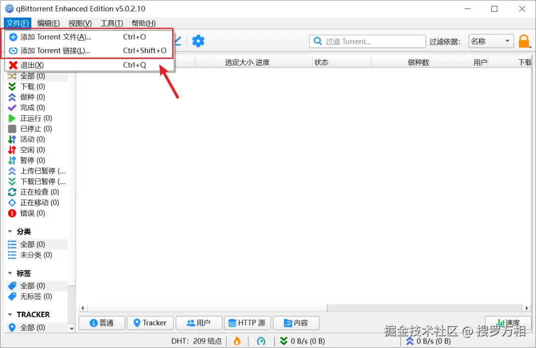 点击左上角文件,可以看到,它同时支持本地种子文件,以及磁力链接。