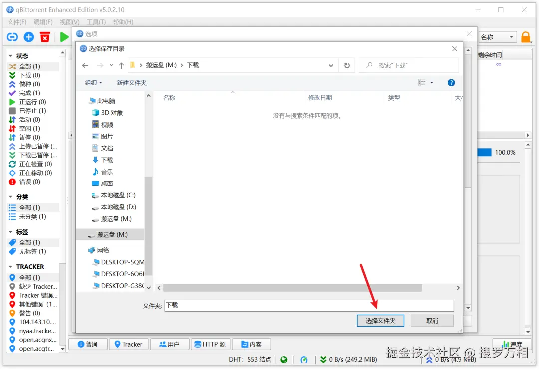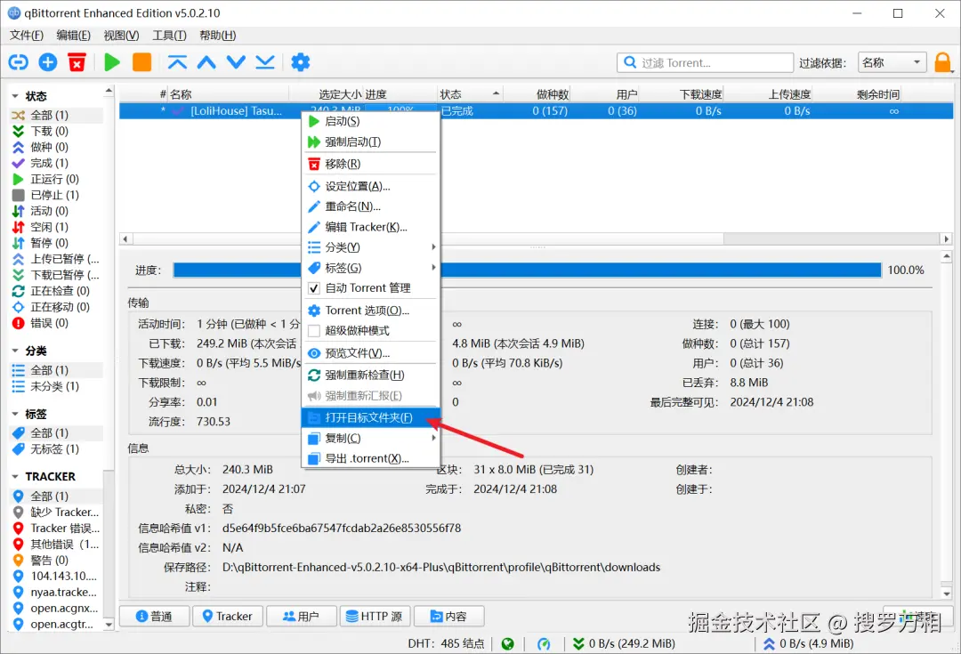 对于下载好的内容,只需按下鼠标右键,在弹出的菜单中,选择打开目标文件夹: