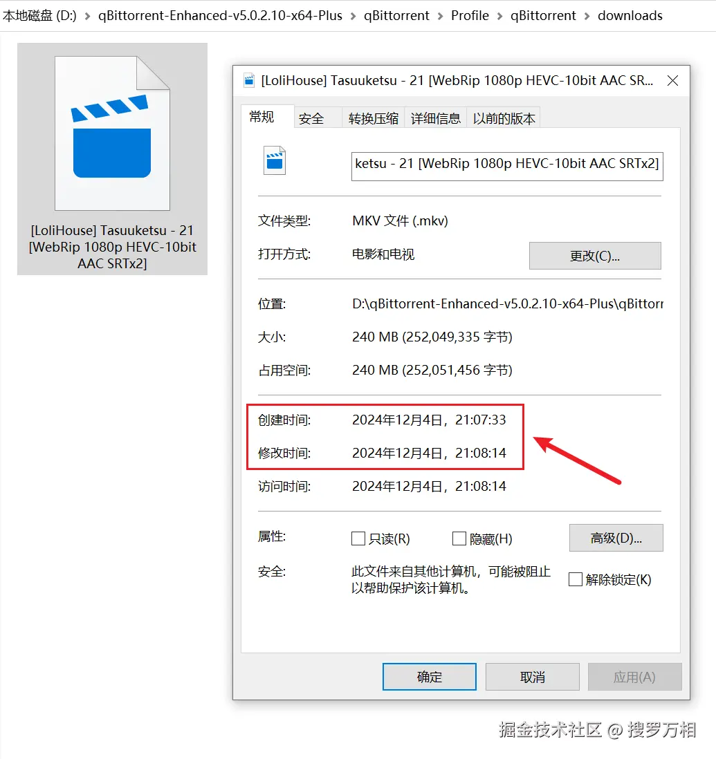 通过创建时间和修改时间,也能算出具体下载时长。