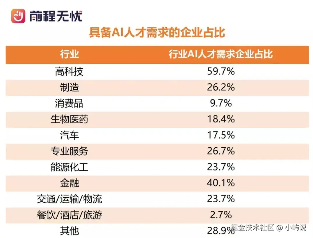 - 人才供需矛盾极其尖锐:猎聘报告显示,国内AI人才缺口已突破500万,供求比例约1:10。前程无忧报告指出,近60%的高科技企业将AI人才招聘视为刚性战略需求。