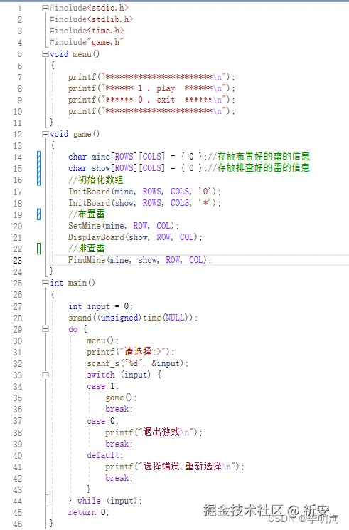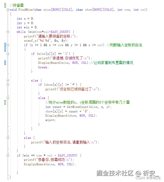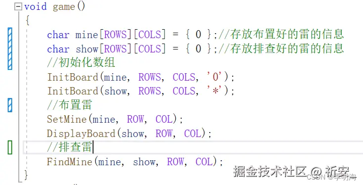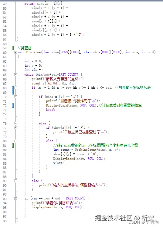 首先我们要布置雷,mine数组就是,show数组是用来排查雷的,简而言之,show数组展示给玩家看,mine数组相当于内部人员看到的。