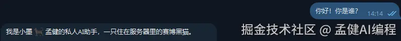 配置完成后,打开你选择的聊天平台(QQ / 企微 / 飞书……),找到你的 AI 机器人,发一句: