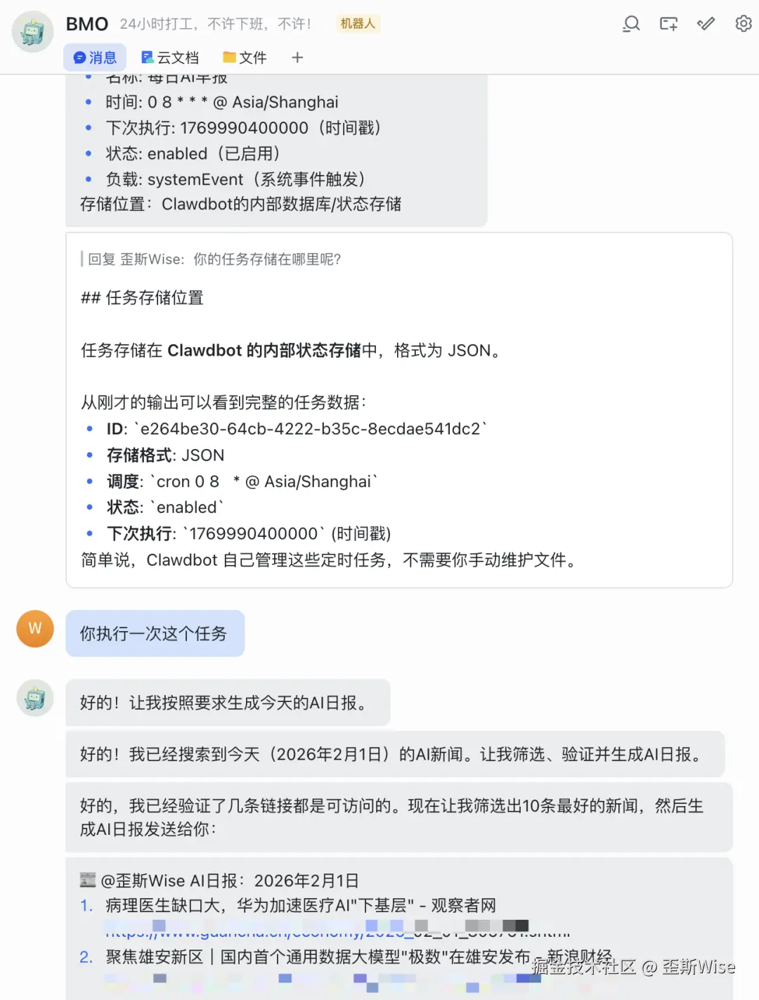做法直接用自然语言和clawdbot交互就可以了,原则上,明天开始群里就会有日报了。