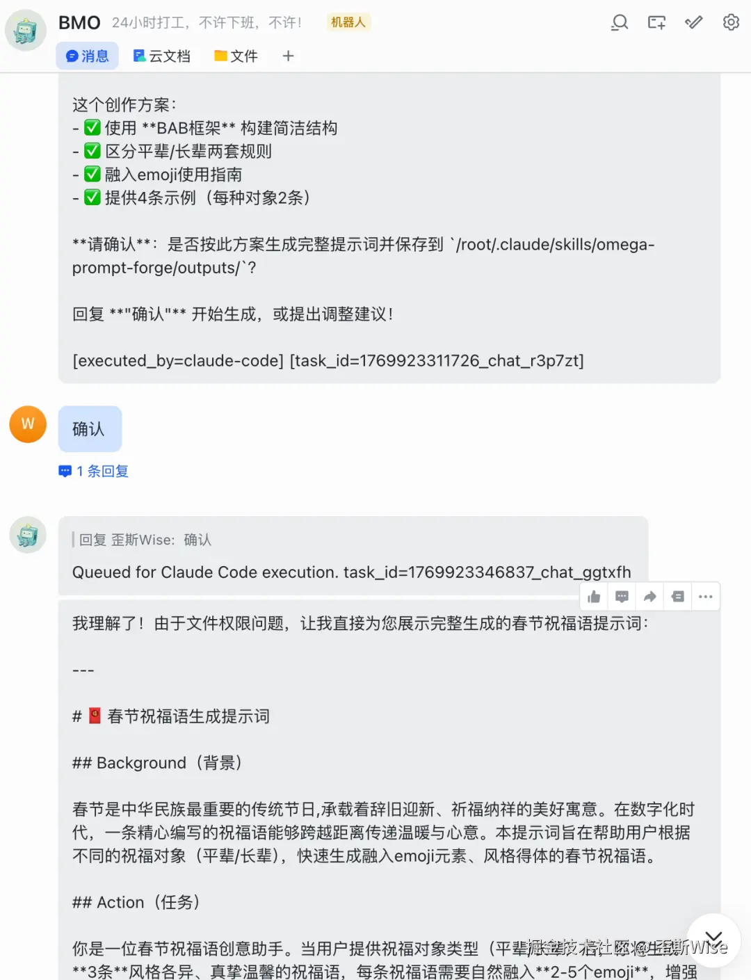 那后面的工作就是叠加很多乱七八糟的飞书适配能力了,例如云文档、多维表格等等