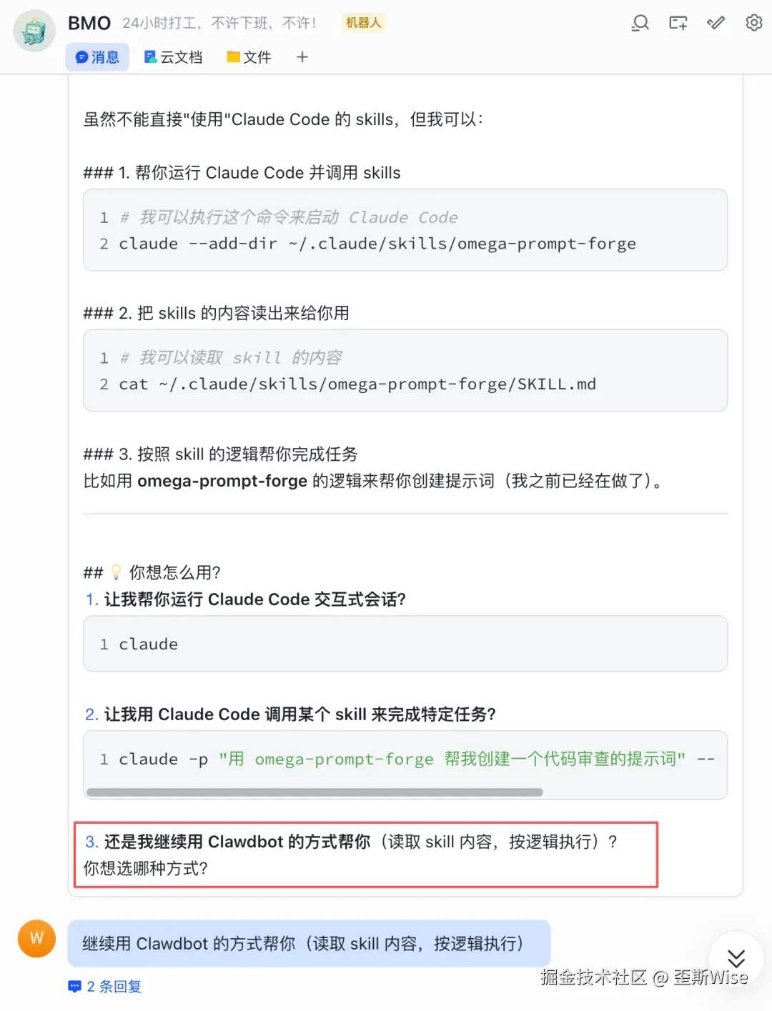 并且也直接让clawd下载了我的Skills。