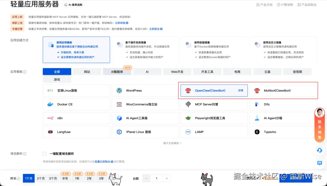 云厂商部署的方式几乎是接近的,从AI调研的结果看,新用户都会有低价折扣套餐,大概是68元/年,老用户的月付大概40元/月,去选年卡套餐。