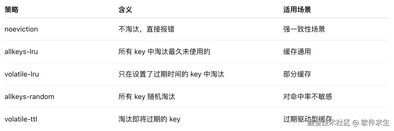 我们先用一张表,快速回顾一下面试必背内容,Redis 内存淘汰策略一览表如下所示: