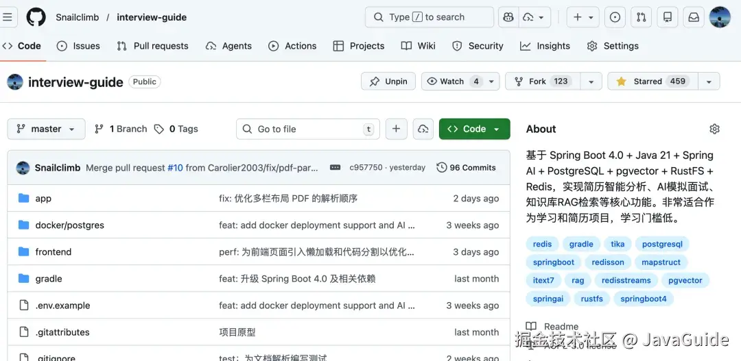 大家好,我是 Guide。今年元旦假期,我写了一个大模型项目并完全开源了出来。