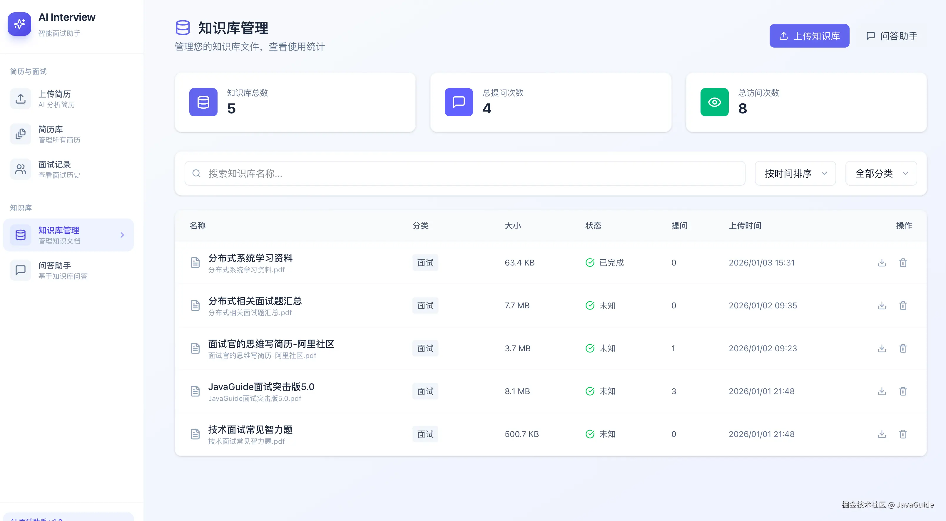 - 增加面试问题去重功能,避免重复提问。