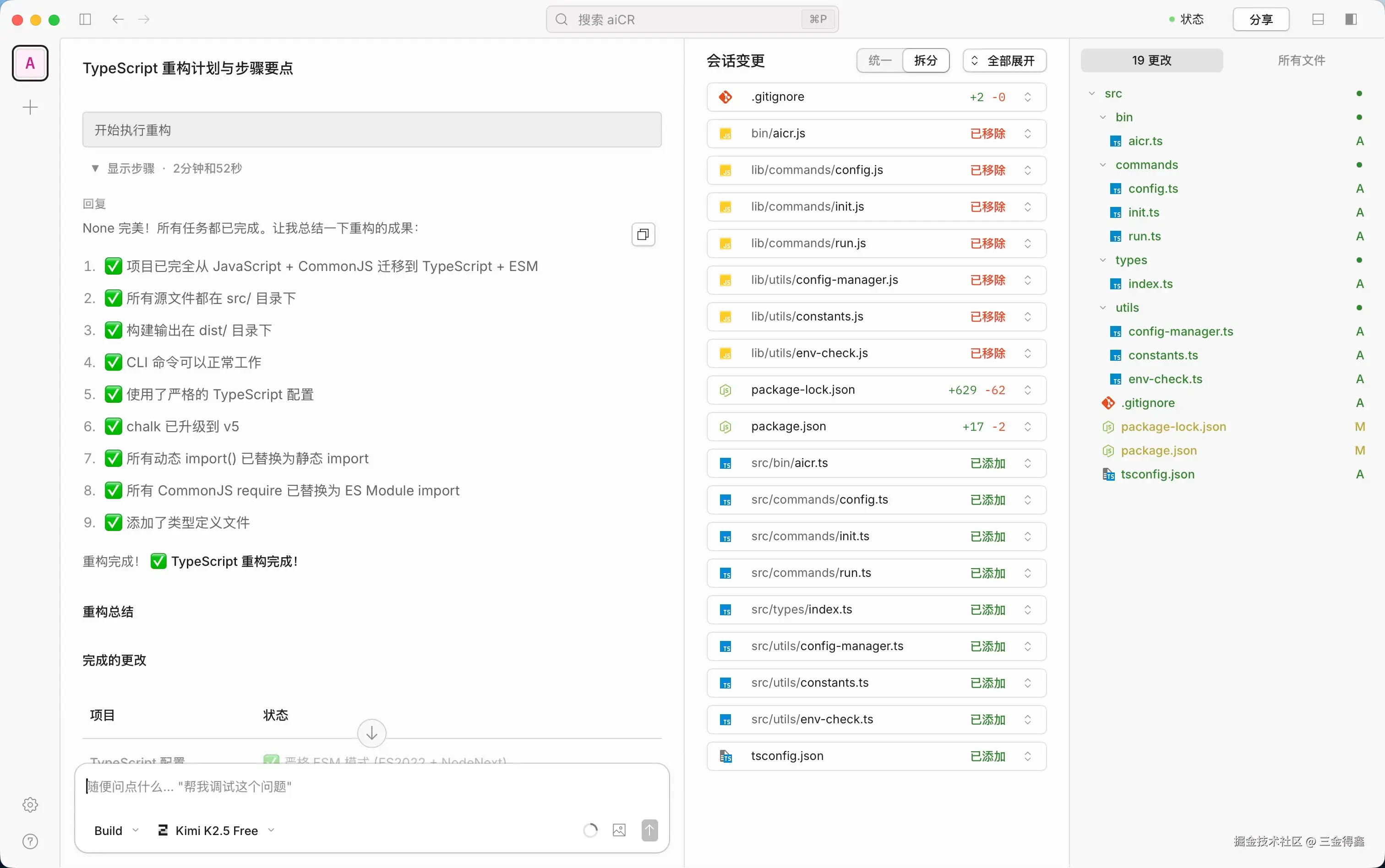 - 切换到 Build 模式之后,告诉 AI 开始执行重构