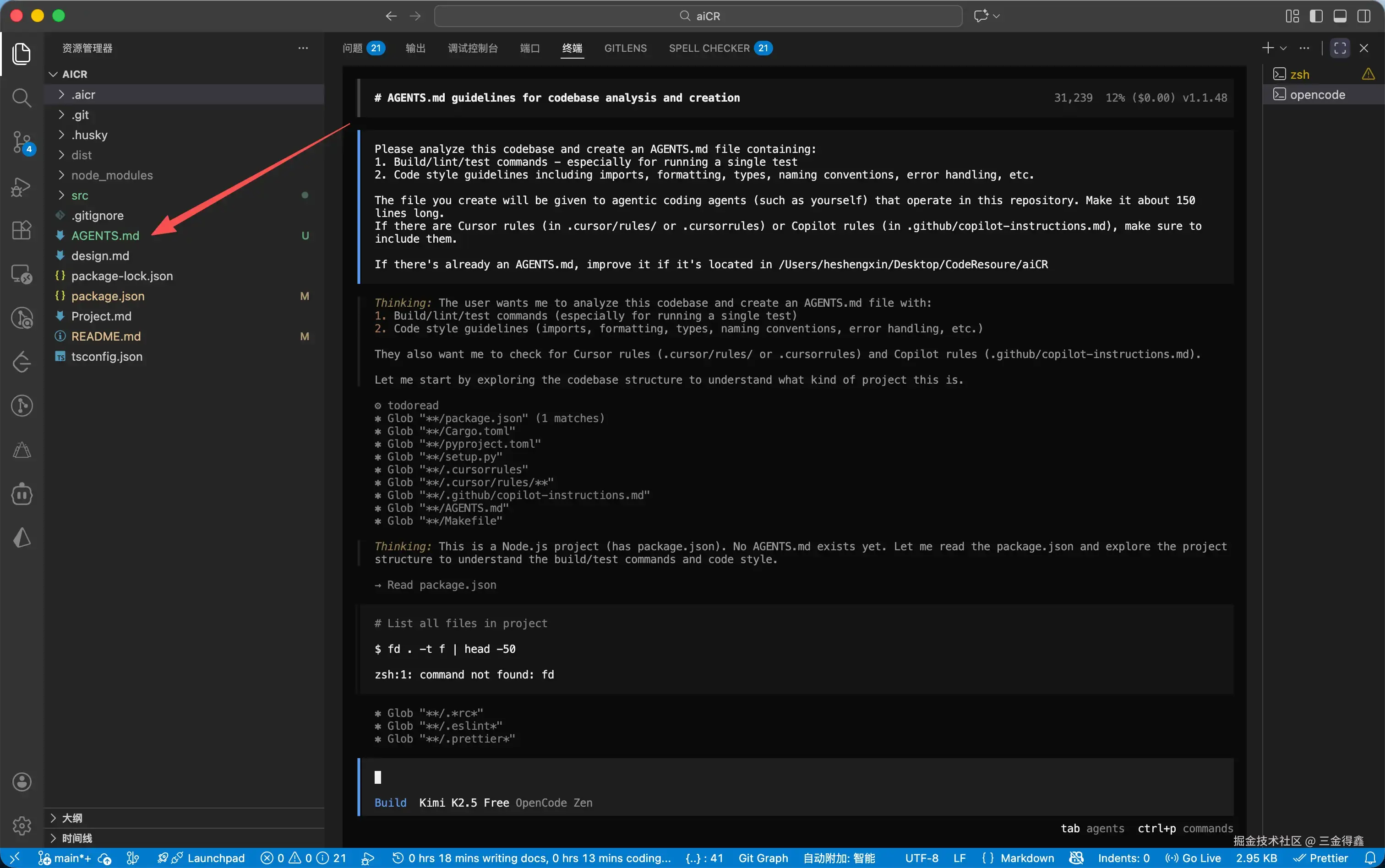 这里说的初始化,并不是我们初始化项目代码,而是通过 opencode 内置的 /init 命令来初始化这个项目的规则文件。