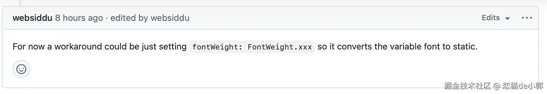 当然,也有说可以通过设置 FontWeight.xxx ,这样 variable font 就会变成静态字体: