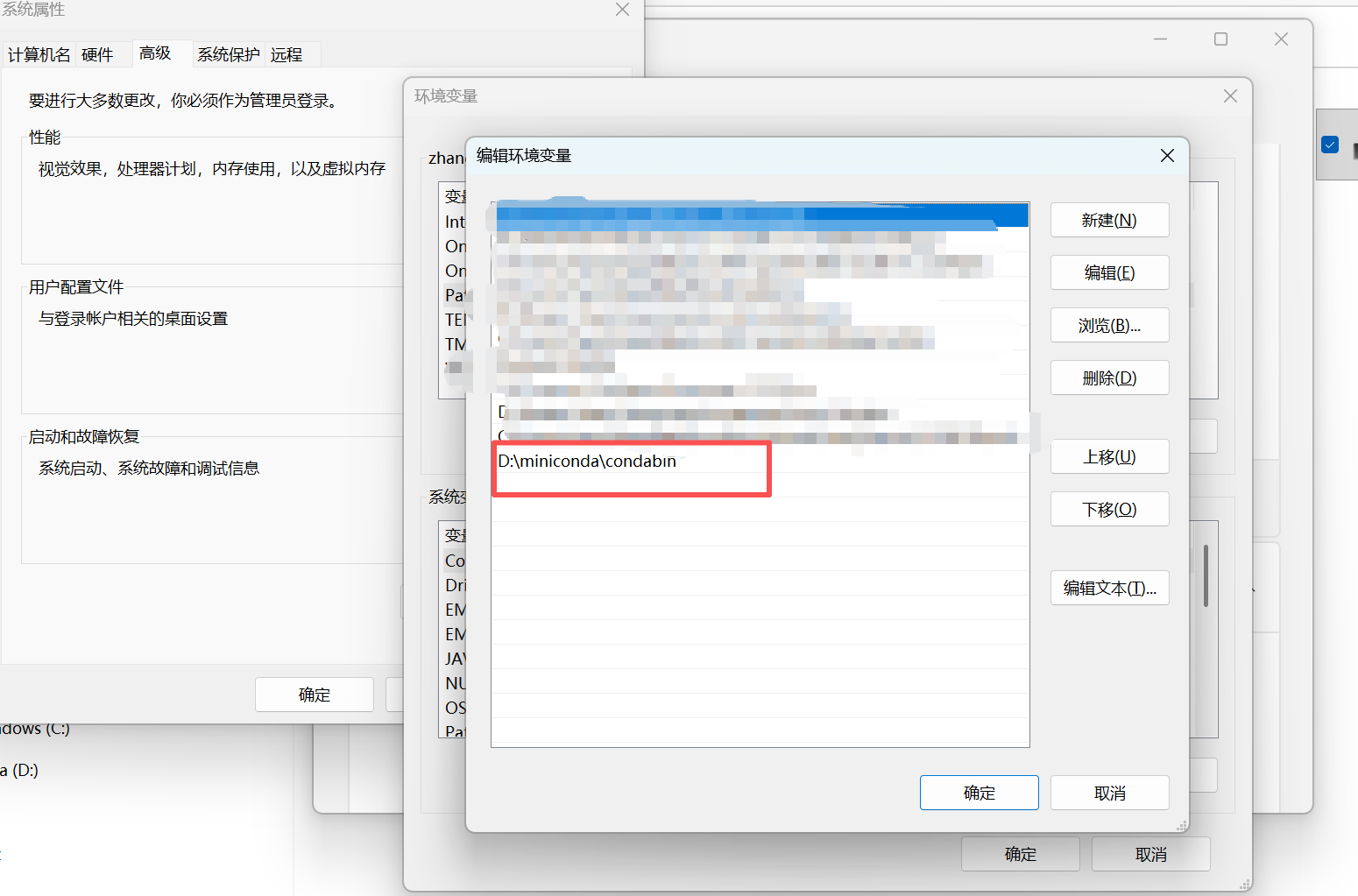 比如我的,就是把 D:\miniconda\condabin 加入到环境变量。