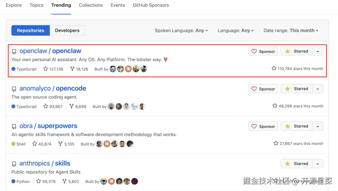 如今 GitHub 上 Star 数即将破 13 万人次(写文章时已到127K),同时登上了 GitHub Trending 日榜、周榜、月榜三个TOP1。
