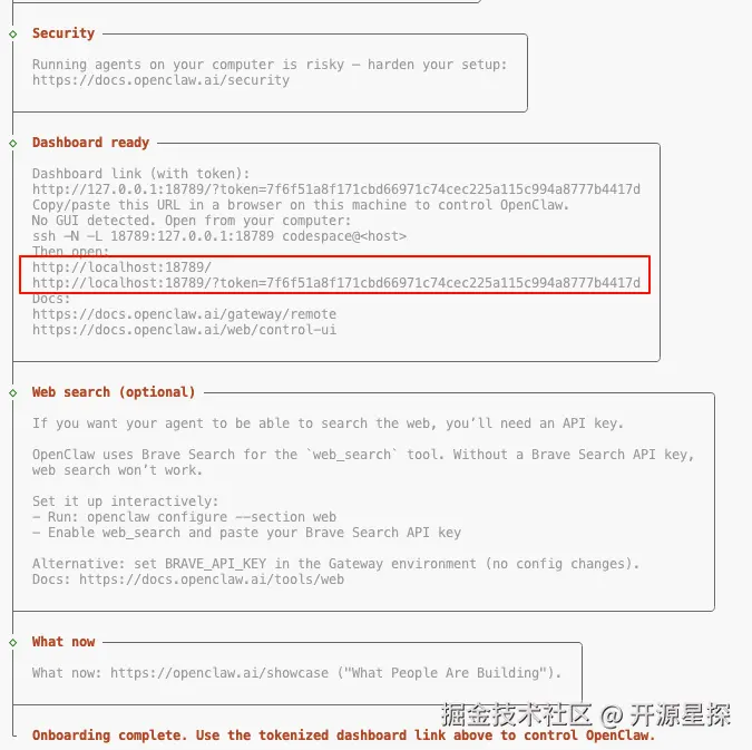现在我们就可以直接在 GitHub 云服务器(codespaces)上启动 OpenClaw 服务了。