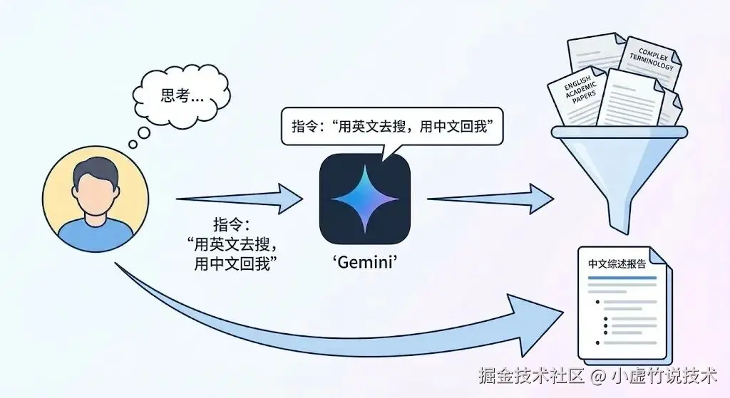 很多冷门方向,中文资料少到几乎查不到,但这事儿在 AI 面前根本不算问题。我们用中文想问题,把啃英文资料这种体力活直接甩给 Gemini 就行了。