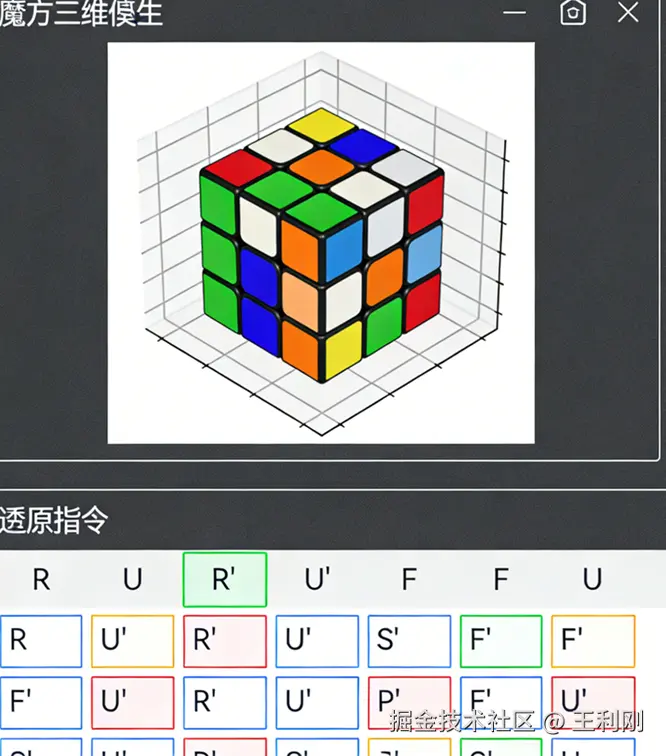 - 建模过程与还原算法实时联动,模型状态随解算步骤动态更新,直观展示魔方还原的每一个关键过程;