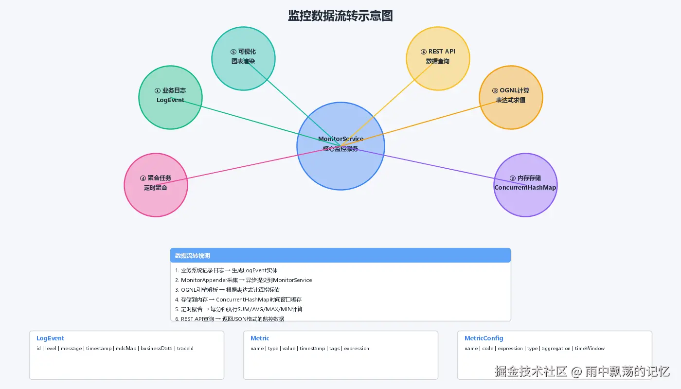本文详细介绍了一个基于Logback和OGNL的日志监控可视化系统的设计与实现。通过扩展Logback日志组件,我们实现了一种零侵入、灵活配置的监控数据采集方案。OGNL表达式的引入使得指标定义变得极其灵活,而完善的可视化渲染能力则让监控数据一目了然。