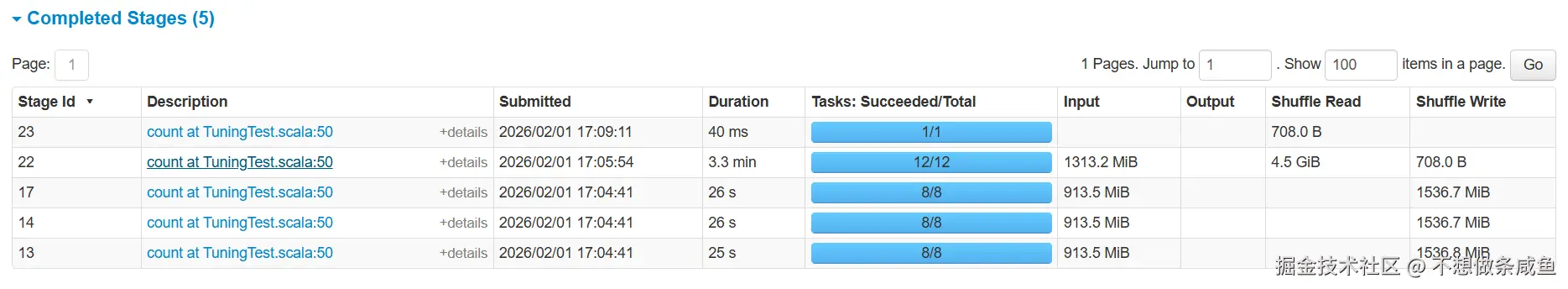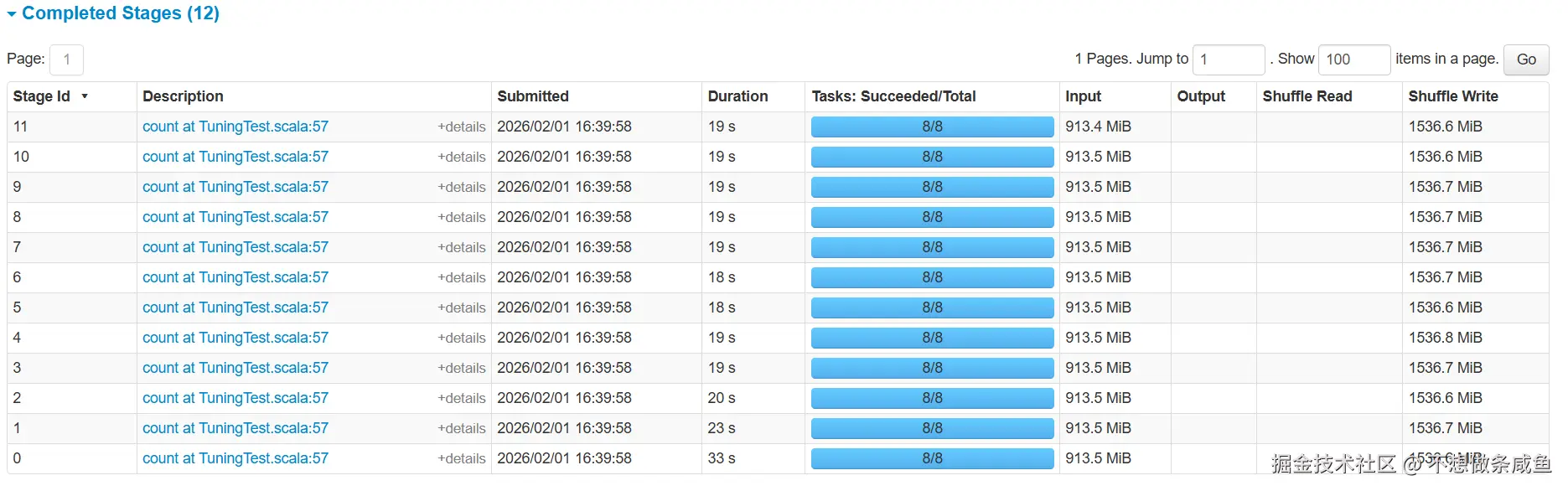 第二次计算,跳过了前三天的数据,直接使用第一次计算的结果,就是stage 11 的Input部分。