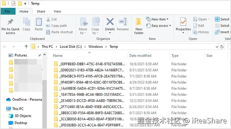 这将打开用户的临时文件夹。按“ Ctrl ”+“ A ”选择所有文件,然后按“ Delete ”。或者,选择无用的文件并删除。