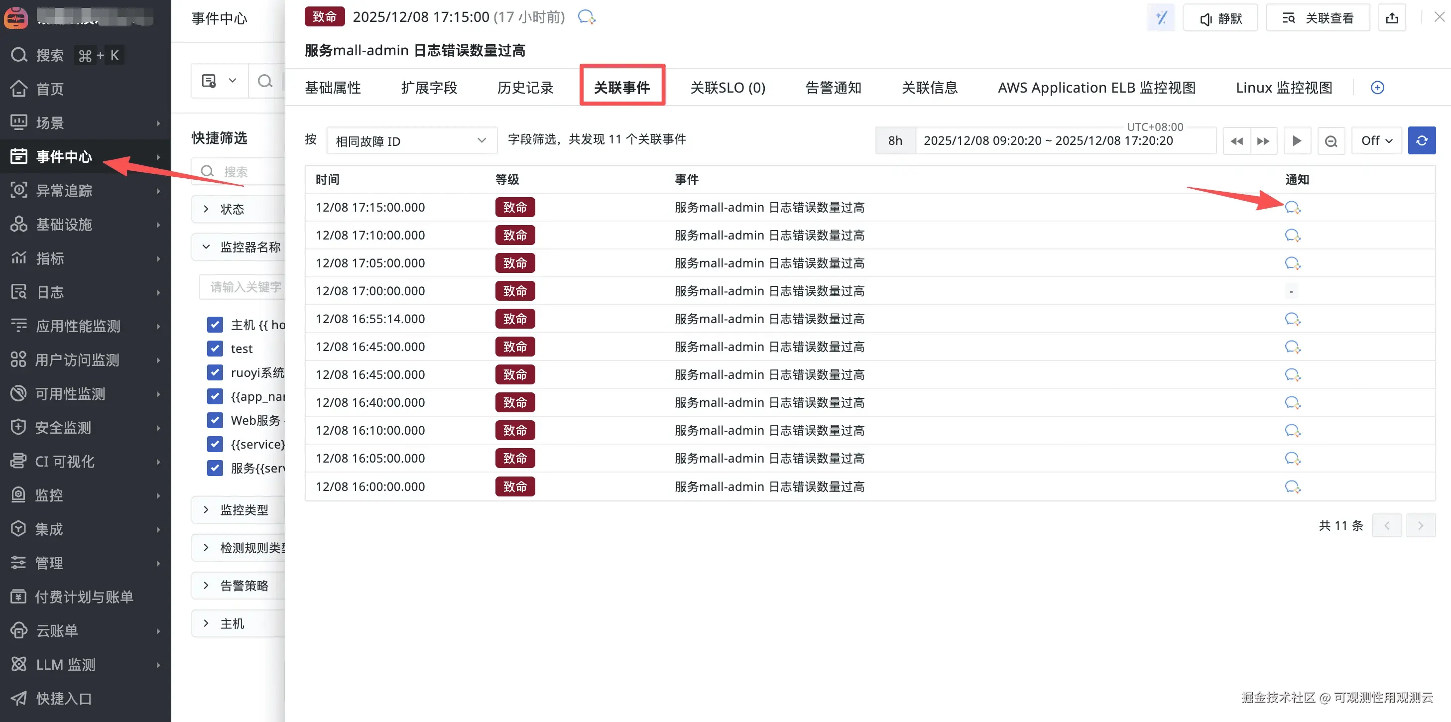 企微未收到告警时,请在“事件中心”查找对应事件: