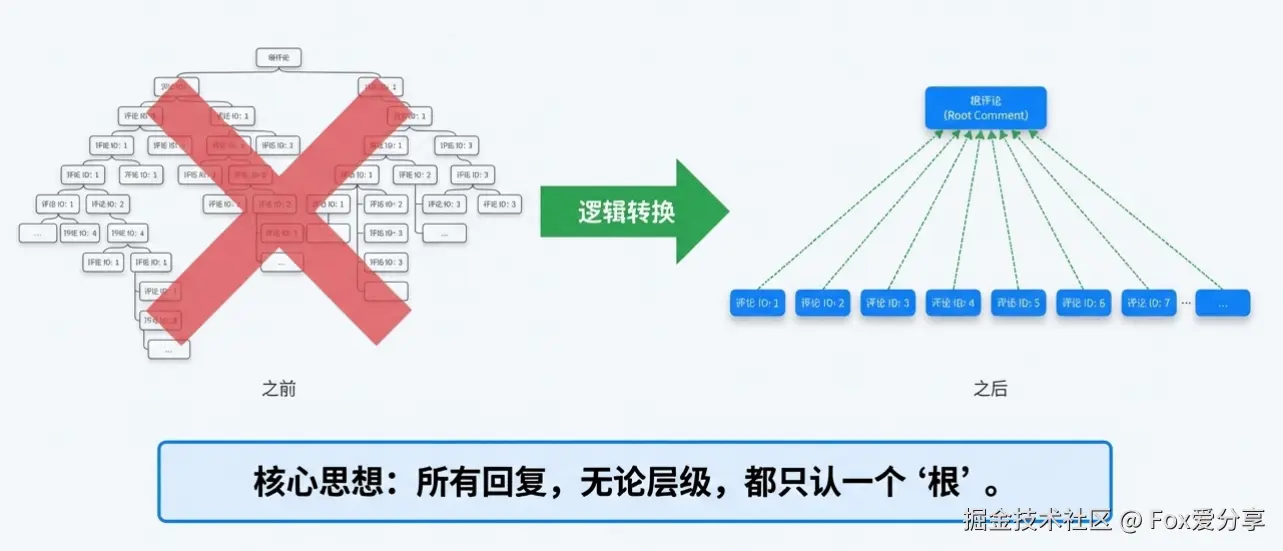 到了这一步,你要先反问面试官一句: “我们的业务形态是‘无限层级’(类似 Reddit/旧版贴吧)还是‘两层结构’(类似 B站/抖音/小红书)?”