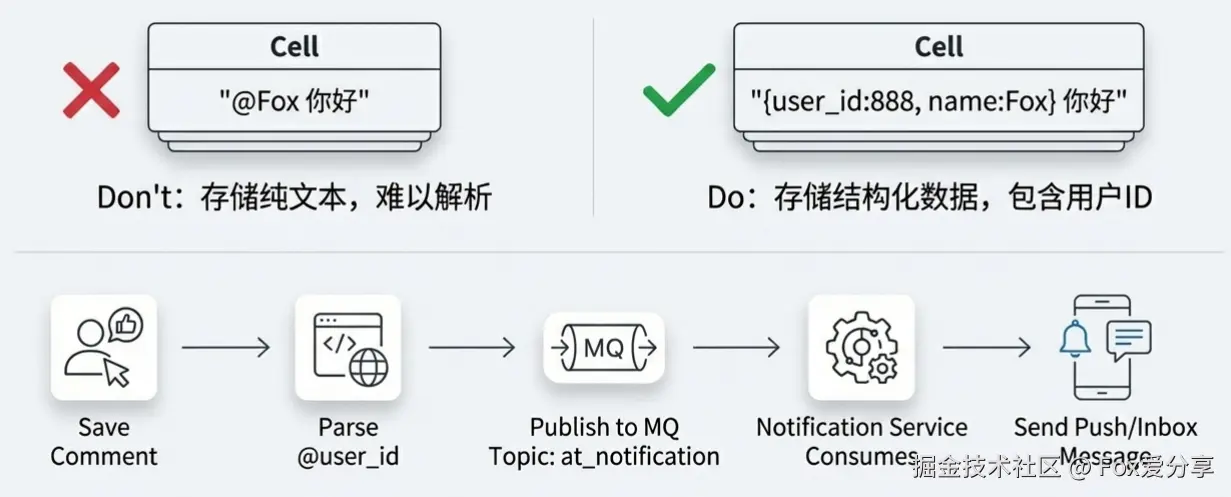 面试官: “评论里可以 @Fox,怎么解析?怎么存?怎么发通知?”