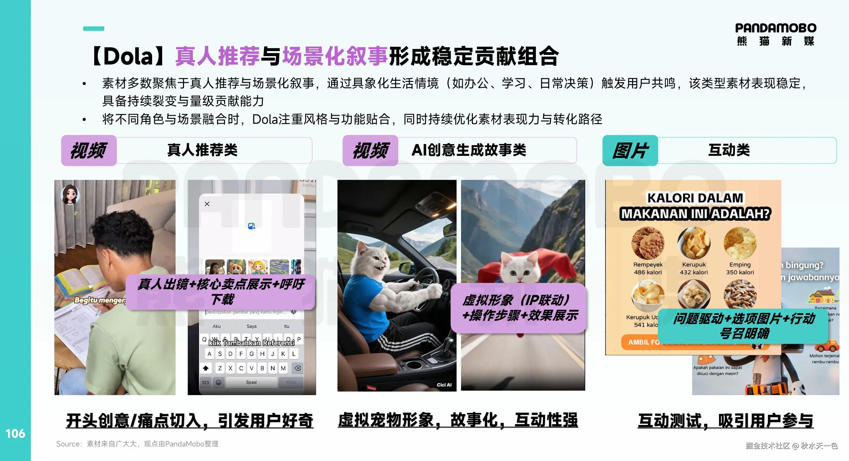 以海外版豆包【Dola】为例,其投放素材多数聚焦于真人推荐与场景化叙事,通过具象化生活情境(如办公、学习、日常决策)触发用户共鸣,该类型素材表现稳定,具备持续裂变与量级贡献能力。