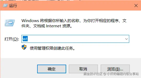 用win+R打开运行窗口输入wt能弹出窗口即为已安装
