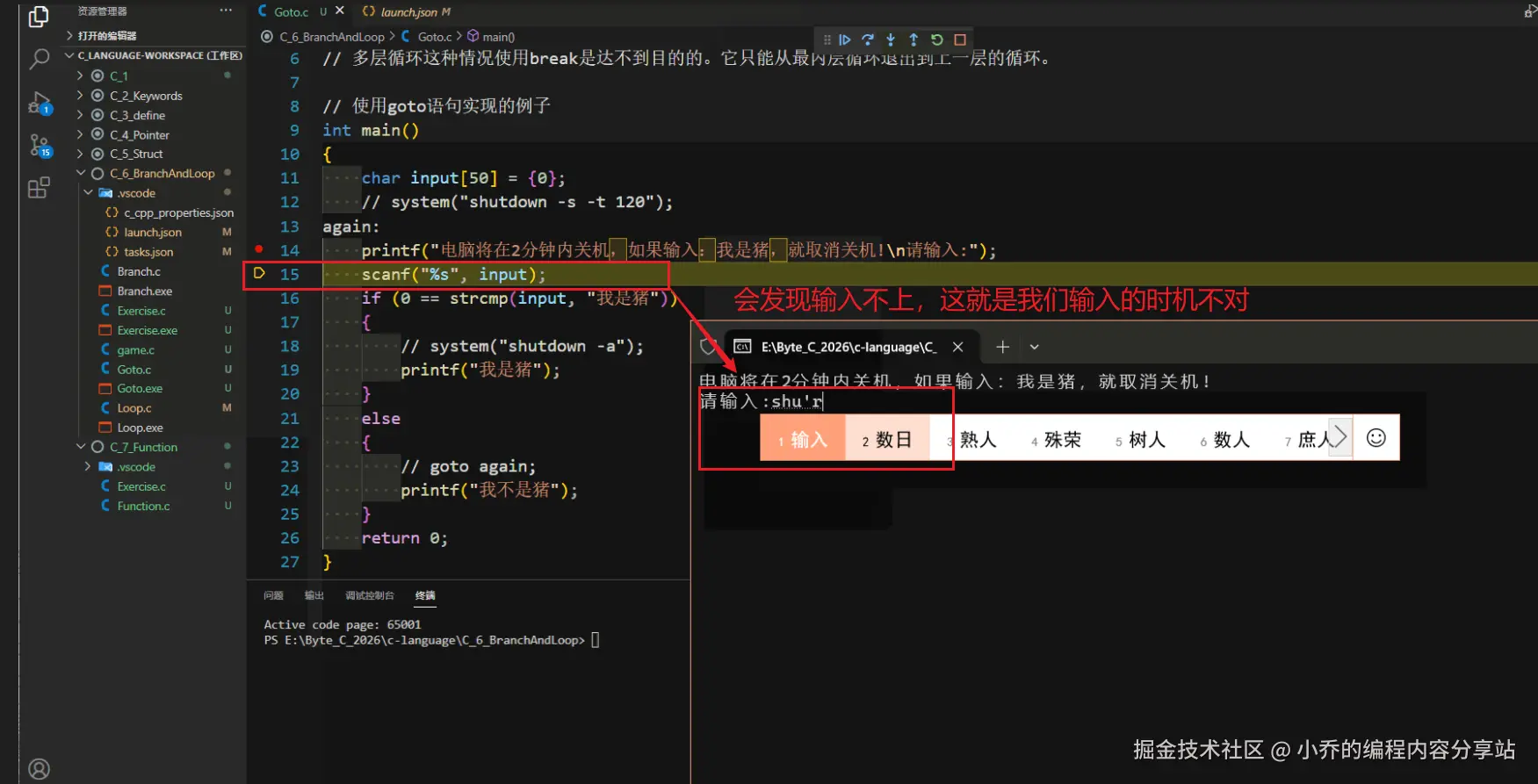 ①VSCode内部是在终端窗口来输入数据的