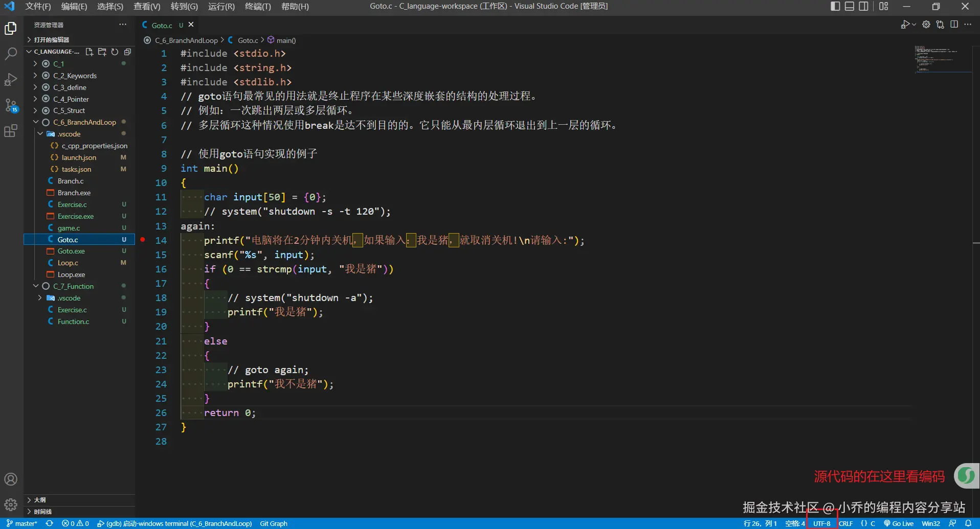 二、本例需要输入中文,但把输入的中文存入数组中发现不是UTF-8编码的导致程序输出不对