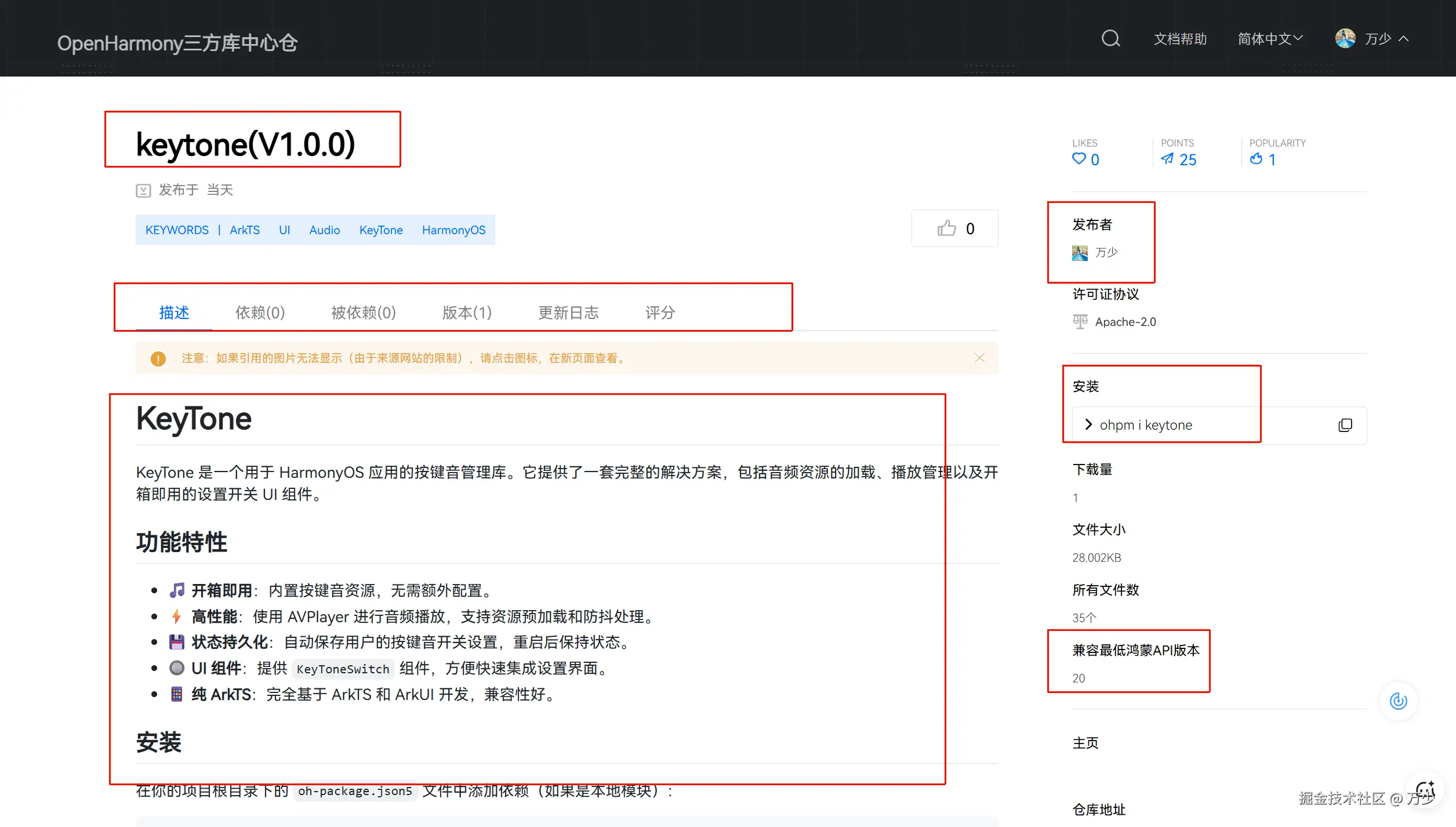 后期发布的时候可以只发布Har,也就是KeyTone,所以不用担心程序受到污染的问题。