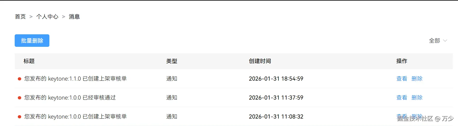 成功后,在三方库个人中心上可以看到审核信息。