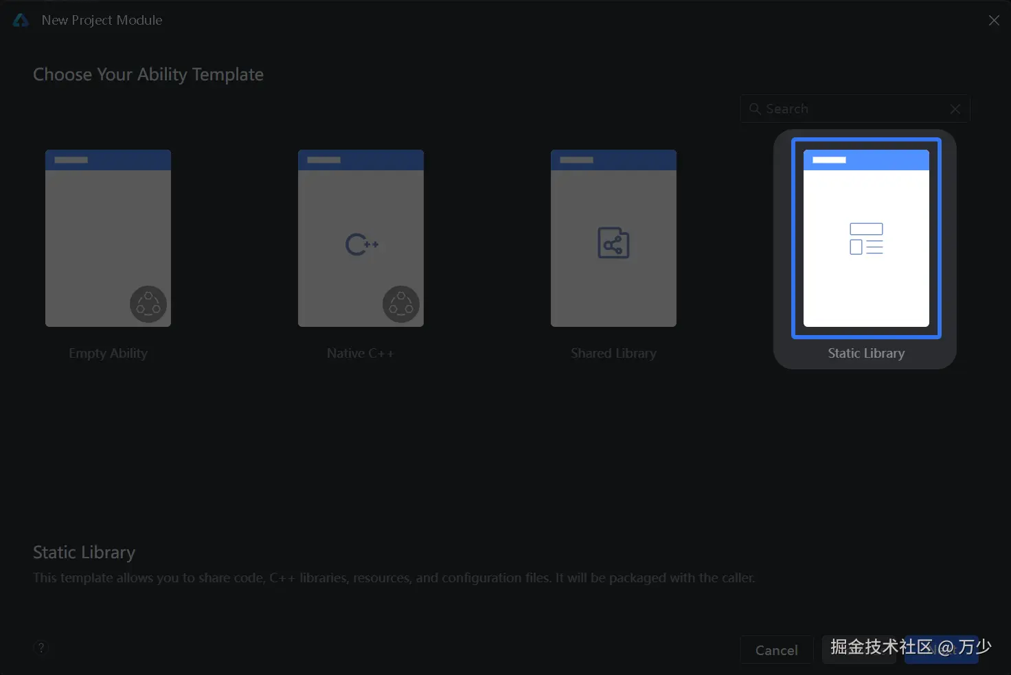 首先,想要发布到鸿蒙三方库,在已有的工程中需要新建一个静态共享包 Har