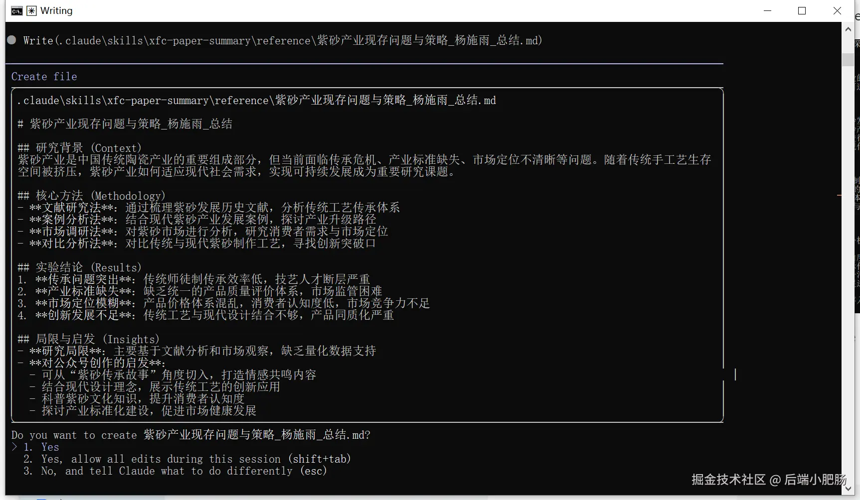我们只要跟随claude code的牵引流程,不停选择yes,即可完成总结文档的写入。