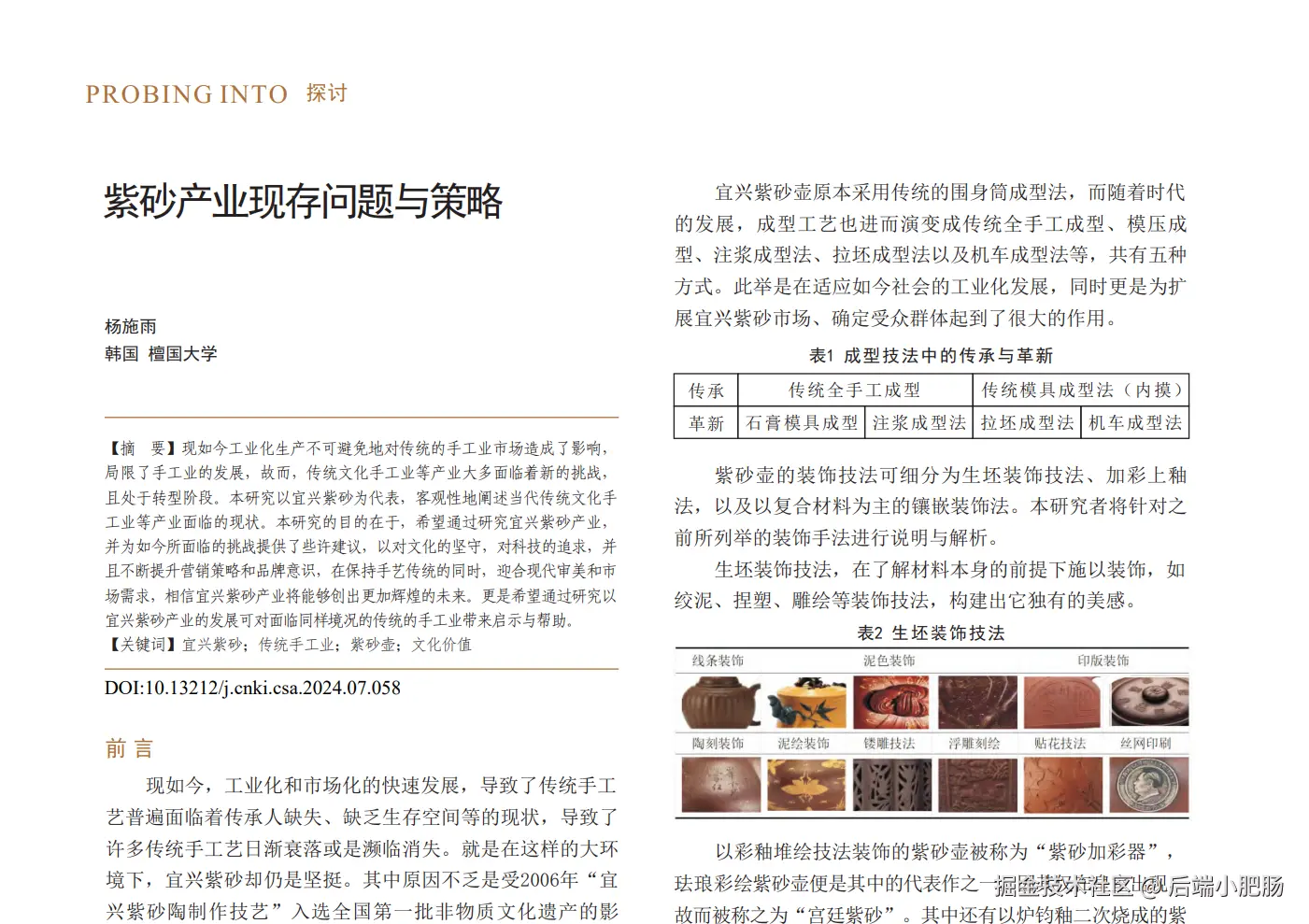 输入"帮我分析总结这个文献 D:/wx/紫砂产业现存问题与策略_杨施雨.pdf"