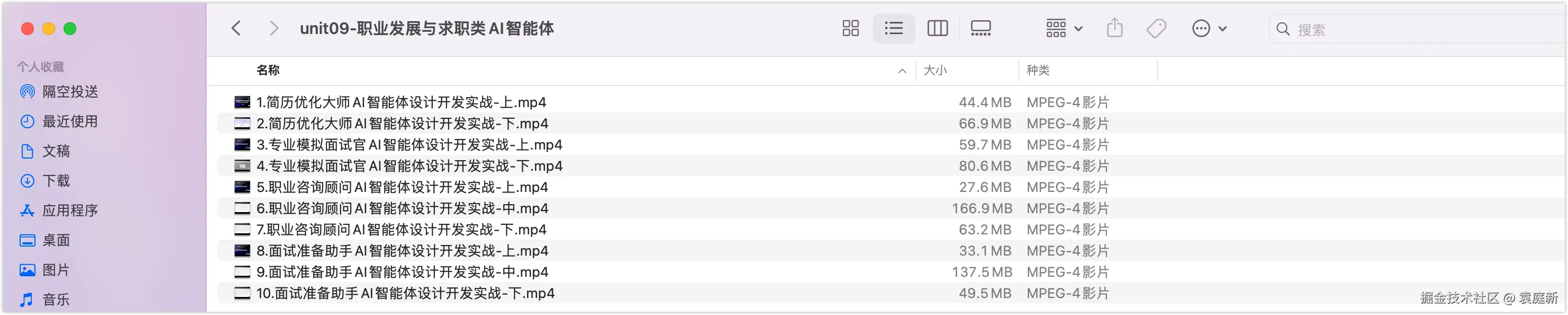 1月份完成《扣子Coze入门到精通零基础开发AI Agent智能体》课程的《职业发展与求职类AI智能体设计实战》模块的录制,该模块共计录制了10节课,对应的是下面四个AI智能体的设计与开发。
